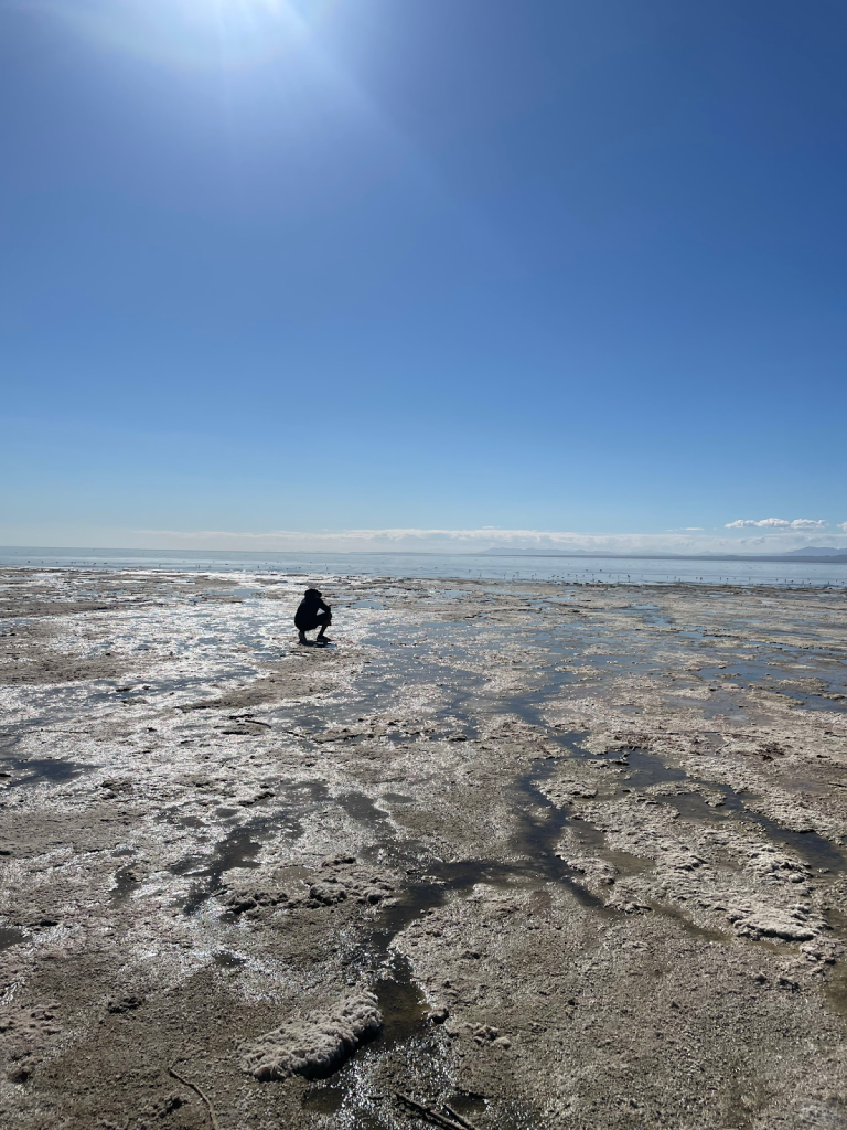 Some time later, the boat team returned. Transporting our samples to our onshore station proved challenging as Quinn Montgomery, part of the team on the boat responsible for handing off water samples to the team on the shore, sank deeper into the soft playa. It took over half an hour to reach dry land—our longest record to date. Once the samples arrived, our nutrient testing efforts accelerated as we followed protocol to examine all seven sampled sites across the lake. While high salinity and nutrient levels can support biodiversity, they risk further deterioration of water quality due to algal blooms that deplete dissolved oxygen. We set aside samples for collaborators at the University of San Diego and the Claremont Colleges, key allies in our efforts. By three o’clock in the afternoon, we ended for the day as we debriefed and shared insights from our fieldwork, looking forward to our next gathering as we parted ways.